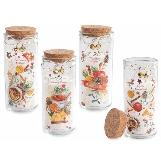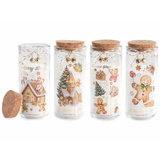 CANDELA IN VETRO CON DECORI DOLCETTI NATALIZI