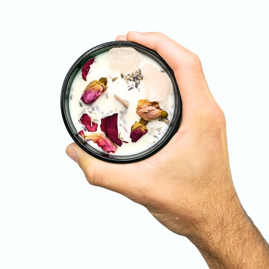 CANDELA FIORI MAGICI E QUARZO ROSA