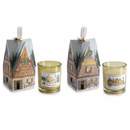 CANDELA IN VETRO CON SCATOLA CASETTA VILLAGGIO DI NATALE