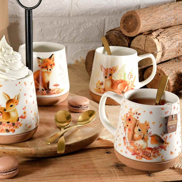 Tazze mug di Natale in ceramica con base in sughero "WinterVillage" e "amici del bosco".